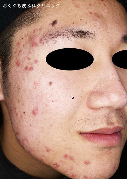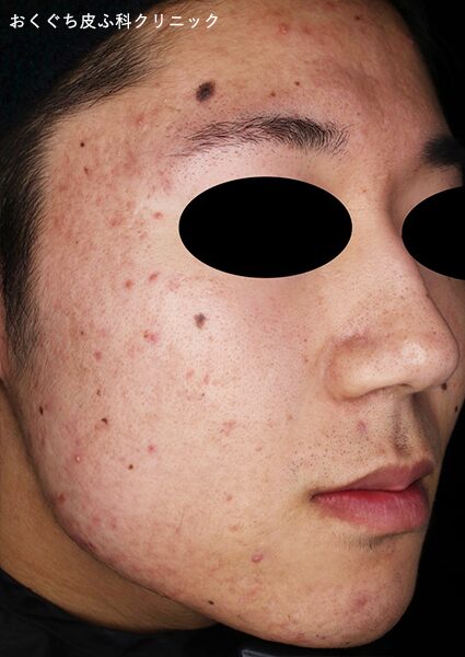 脱脂を行い、皮脂腺をターゲットとするレーザー照射
